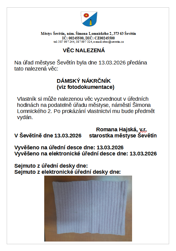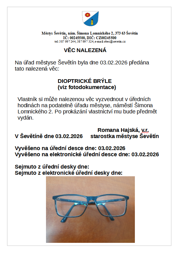 | Vyvěšeno: 23.02.2026 | Bude sejmuto: |