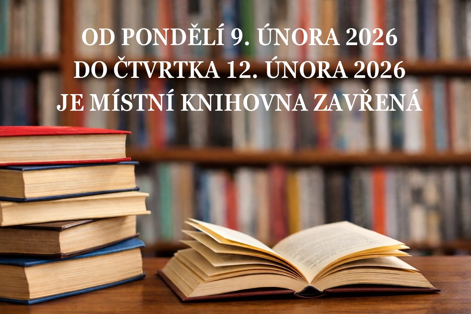 Informujeme občany, že od pondělí 2. března 2026 je místní knihovna otevřena pro své čtenáře.