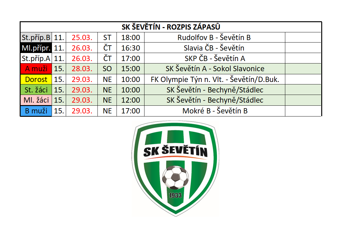 SK ŠEVĚTÍN - ROZPIS ZÁPASŮ