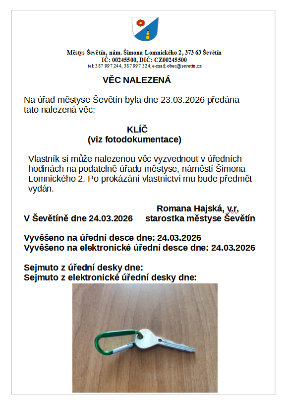| Vyvěšeno: 24.03.2026 | Bude sejmuto: 27.03.2026 |